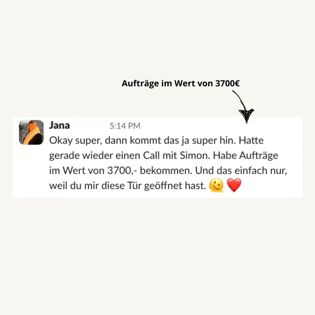 Über mein Netzwerk, die wöchentliche Opportunity-Liste, Freelancer-Plattformen und ein simples Pitch-System. Du bekommst Vorlagen, Feedback und Unterstützung bei der Verhandlung.